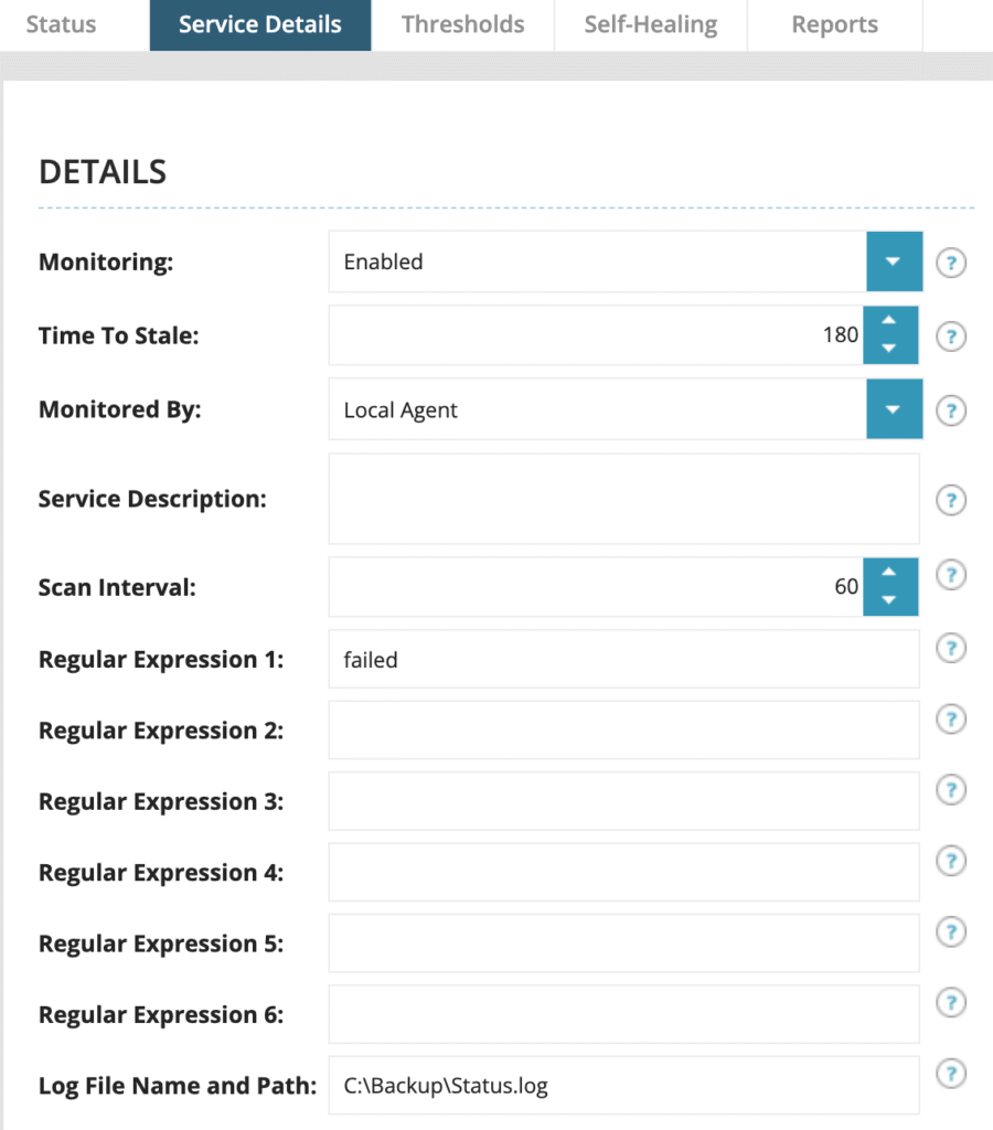 - In the Service Details tab, specify the path to the log file. In my example, it’s: C:\Backup\Status.log