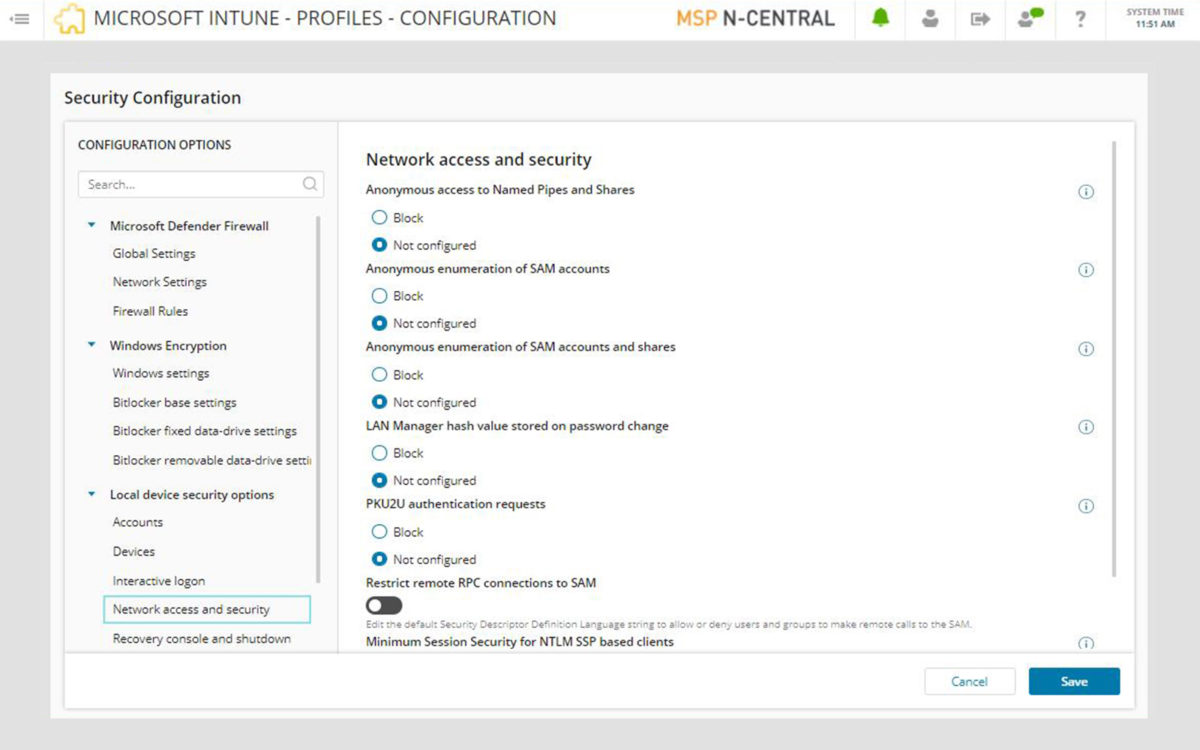 L’intégration de Microsoft Intune avec N‑able N‑central vous permet d’utiliser les fonctions de gestion de Intune, de standardiser les notifications et les alertes pour tous les appareils, le tout depuis l’interface N‑central.