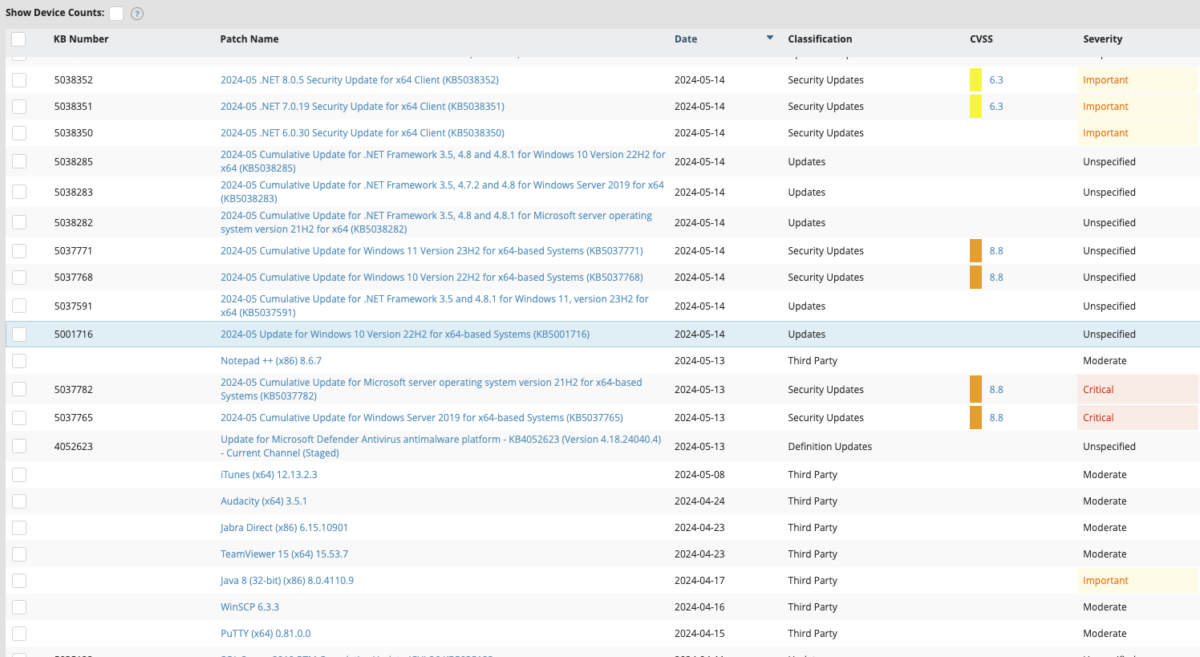 Idealmente, le patch di Windows vanno aggiornate al momento del loro rilascio da parte di Microsoft. La nostra gestione delle patch esegue test su ciascuna patch di Windows prima di metterla a disposizione dei partner. È consigliabile eseguire la stessa operazione sui sistemi critici tramite il nostro processo di approvazione delle patch e i relativi criteri per i dispositivi utilizzati.