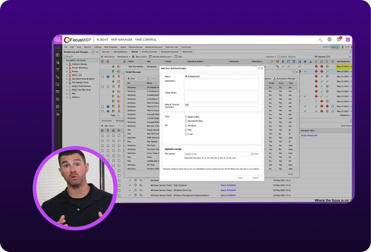 Reclaim hours of your day by automating patching, monitoring, backups, security scans, software deployment, and reporting. IT automation from N‑sight saves your team valuable time.
